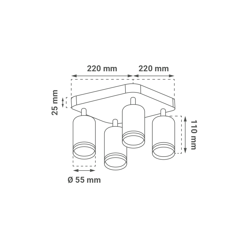 Dimenzije nosača svjetiljke 220 x 220 x 25 mm